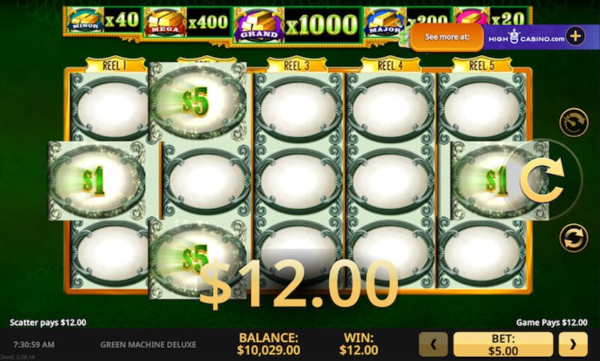 High 5 Games kiest voor een traditioneel rooster van vijf rollen en drie rijen. Er zijn echter, in tegenstelling tot de meeste online slots, geen vaste betaallijnen in The Green Machine Deluxe. In plaats daarvan gebruikt de ontwikkelaar een “what you see is what you get” mechanisme.